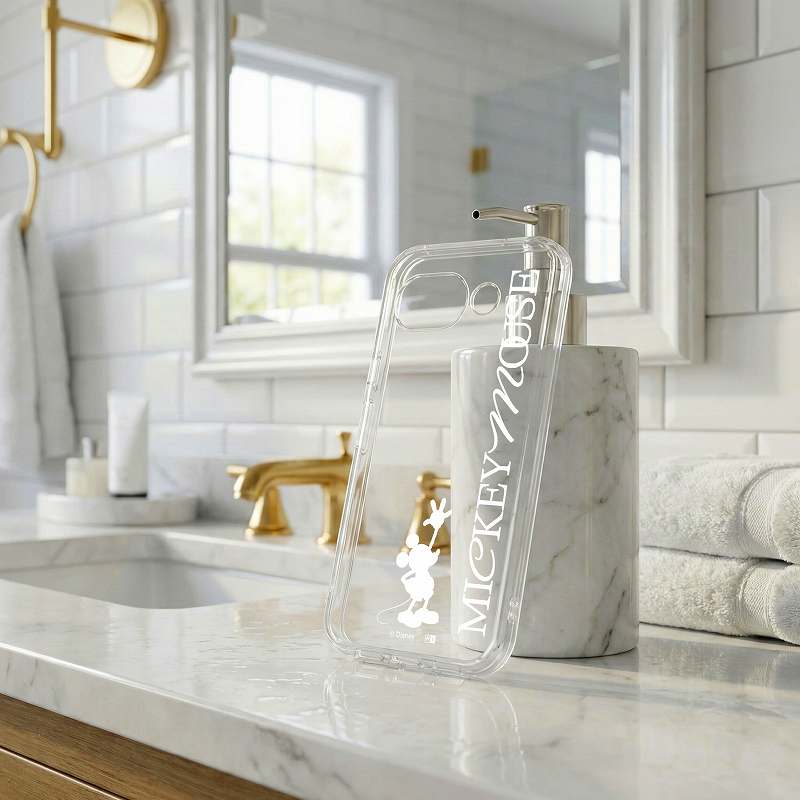 シンプルで可愛いらしいミッキーのデザインが楽しめる透明感のあるハイブリッドケース。