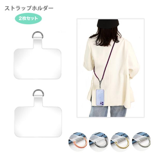 ストラップホールシート Dカンタイプ 2枚セット 全機種対応 スマホ 挟むだけ ストラップ 透明 丈夫 パッチ タグ 落下防止