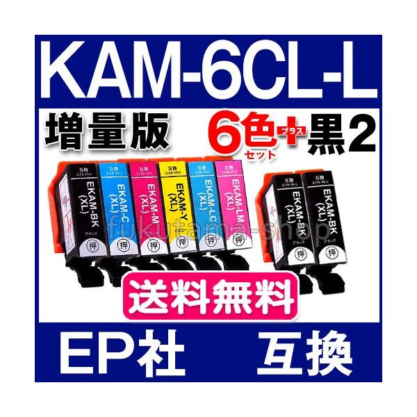 エプソン互換インク KAM-6CL-L 6色セット+黒2本 増量 の互換インクカートリッジです。
