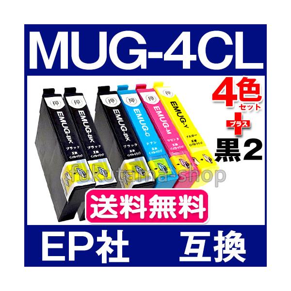 MUG-4CL エプソン プリンター インク 4色セット+2本黒(MUG-BK) EPSON 互換インクカートリッジ MUG-BK MUG-C MUG-M MUG-Y EW-452A EW-052A