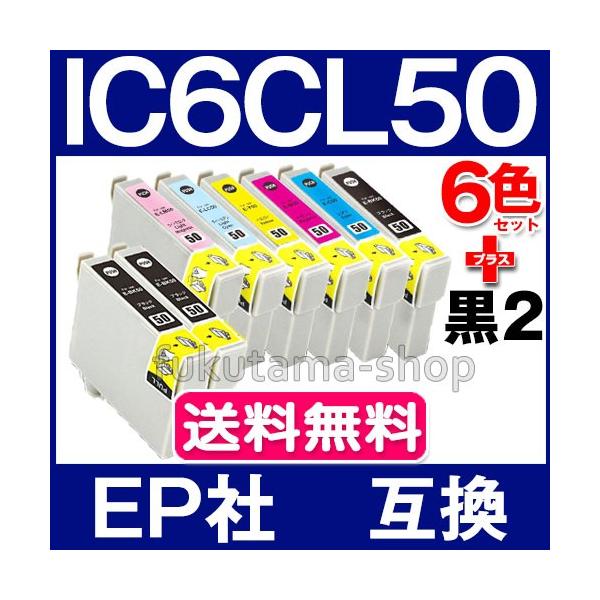 純正同様にお使いいただける エプソン互換 IC6CL50 6色セット+黒2本(ICBK50) 互換インクカートリッジです。