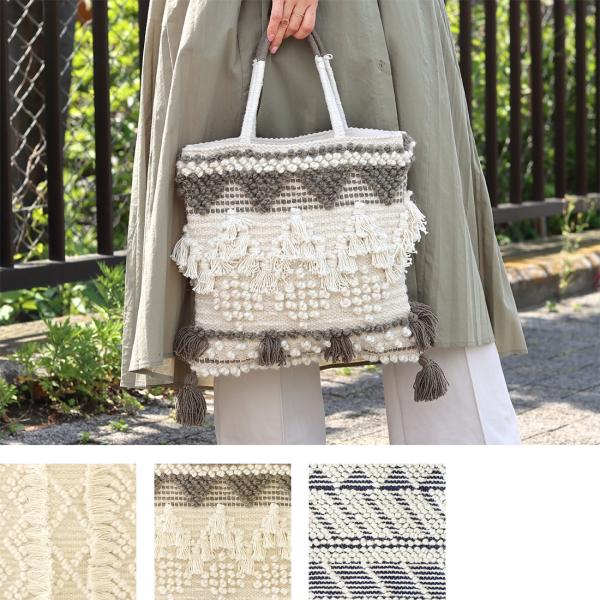 値下げ トートバッグ 手織りバッグ ネイティブ柄 クラフト ウールデコ