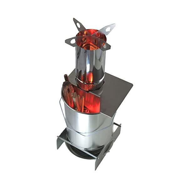 煙が少なくよく燃える!天板はホットテーブル/煙突トップは強火のコンロ。キャンプに最適なクッキング焚き火台。 燃料は落ちてる自然の木っ端で十分!縦入れなので楽々そのまま燃え落ちていく。缶フタを被せればたちまち消火/燃えカスぜんぶ缶の中。(缶は無加工そのまま)