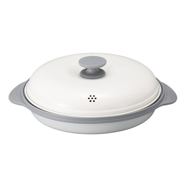 - 商品説明★ 多彩な調理ができる「炒める・茹でる・焼く・煮る・蒸す・炊くがこれ1つ」電子レンジ調理器具「copan(コパン) レンジグリル」毎日の料理が楽しくなるような便利なレシピ付き★ 食材を入れて電子レンジでチンするだけで「焼き目」がつくので焼き魚も簡単。ステーキなどの肉料理や冷凍餃子も美味しそうな焼き目付きで調理できます。★ 電子レンジ調理にお任せだから失敗する心配や、油ハネ、ニオイも気になりません。朝食やお弁当作り、夕食のあと一品、ランチや来客時のツマミなど。★ グリル部分は、ふっ素樹脂加工なので汚れが落ちやすく、食器洗浄機対応なのでお手入れも簡単。コンパクトサイズで、食卓にそのまま持ち運びしやすく、軽いので棚からの出し入れも簡単。スペック* 商品サイズ:幅27.5×奥行23×高8.8cm* 商品重量:577g* 満水容量:1L(実容量:0.85L)* 材質:アルミメッキ鋼板、シリコーンゴム、内面:ふっ素樹脂加工