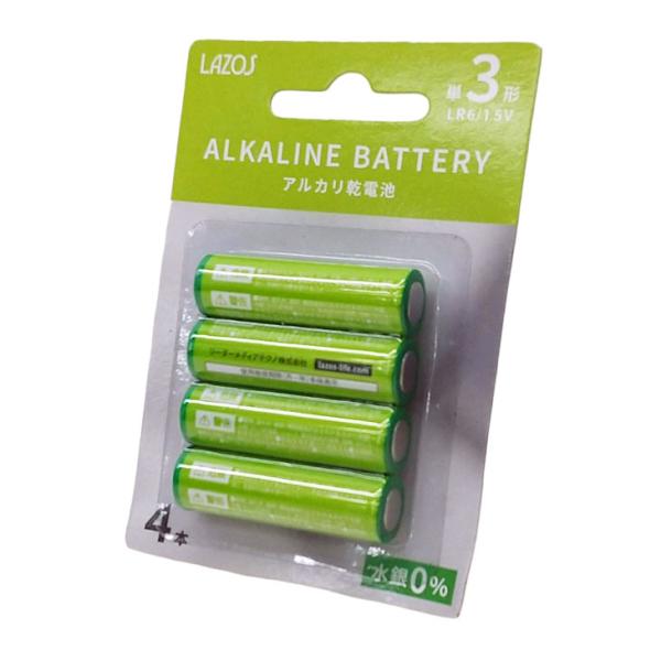 - LAZOS 単三形 アルカリ 乾電池 単3形 (4本入) 長時間長持ち ウルトラハイパワー ★単3形 アルカリ乾電池 ★4本入り ★水銀0使用 ★LR6/1.5V☆レビュー投稿で特典配布中!☆