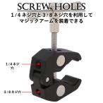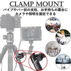 ・パイプやバー状の支柱、お手持ちの雲台にカメラや照明を固定できるクランプマウント。ビデオとカメラの同時撮影や照明器具も一緒に取り付けられ大変便利です。1/4と3/8インチのネジ穴が付いているので、ほとんどのカメラ用の雲台に対応できます。
