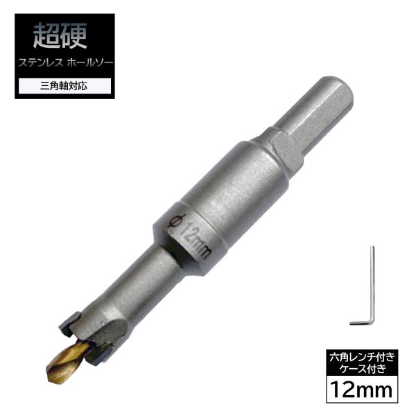 ホールソー 12mm 超硬 ステンレス 穴あけ 耐久性 スパイラルドリル 電動ドリル 切削工具【六角レンチ ケース付き】