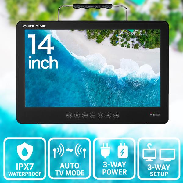 【どこでも地デジ視聴・録画対応】防水 ポータブルテレビ 14インチ 車載対応 HDMI入力 microSD録画 お風呂 キャンプ TV OT-WPT14AK