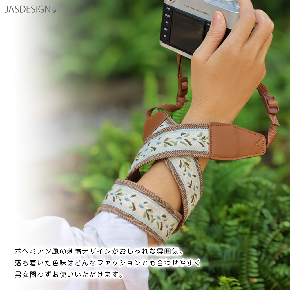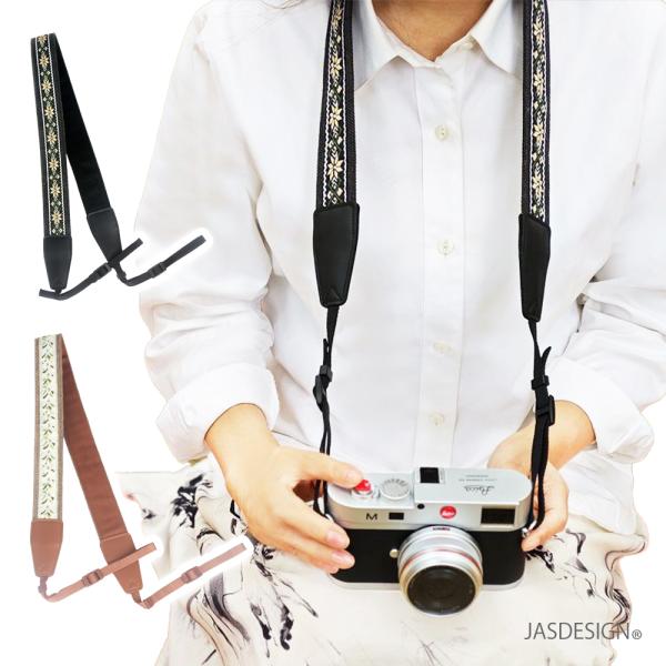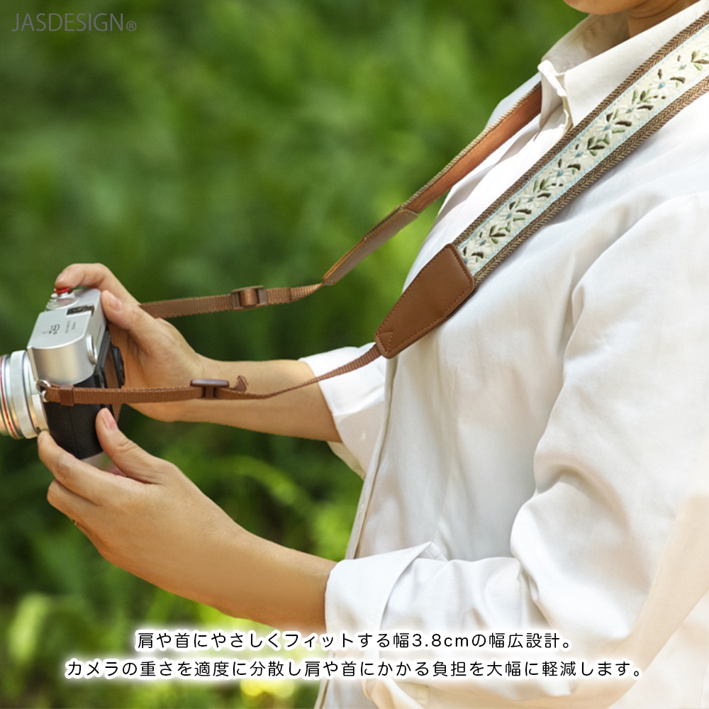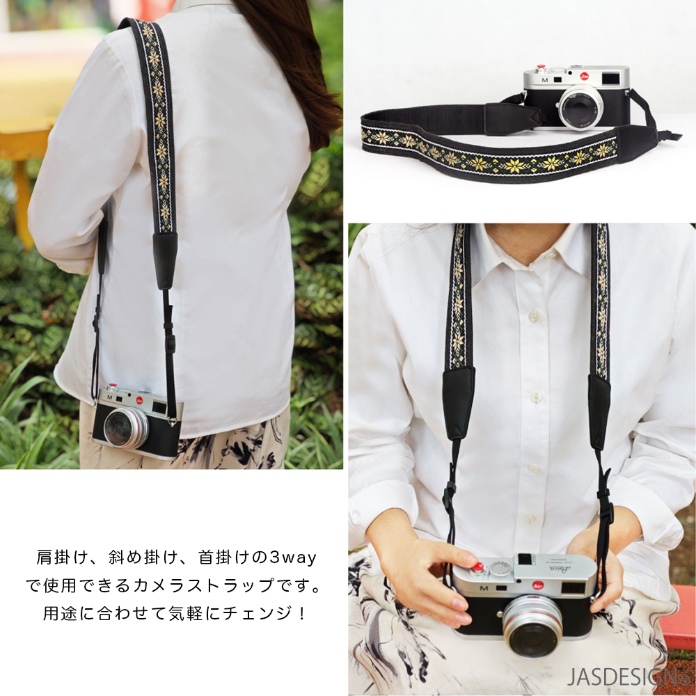 カメラストラップ 一眼レフ ストラップ ネックストラップ 首掛け ショルダータイプ カメラ ボヘミアン風 刺繍 レトロ レザー 革 かわいい おしゃれ JM-468