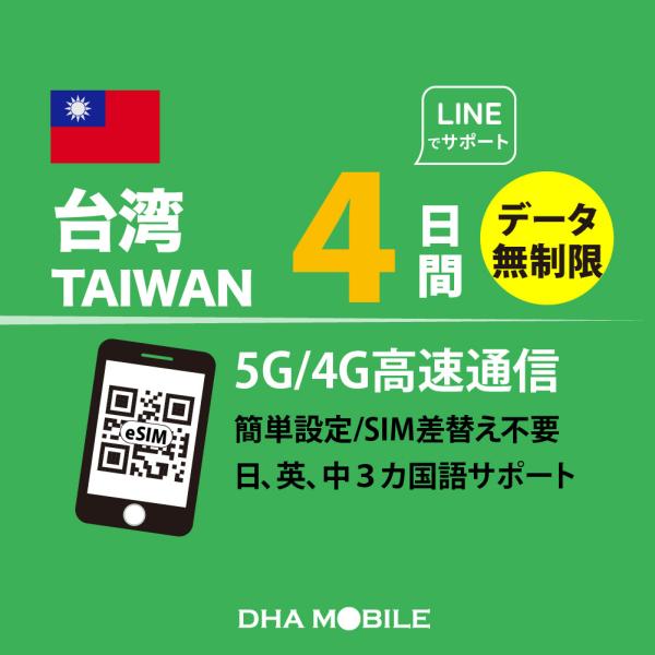 【メール送付】台湾eSIM 4日間 無制限 台湾SIM プリペイドsim 簡単設定 説明書付 4G/LTE回線 データ通信専用 eSIM対応SIMフリー端末のみ対応