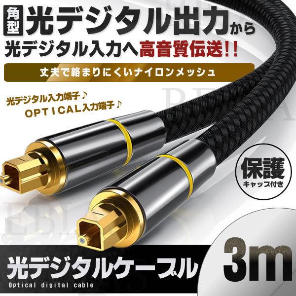 光ケーブル ファイバー ブラック 3m オーディオ 角型 プラグ 24K金メッキ ナイロンメッシュ