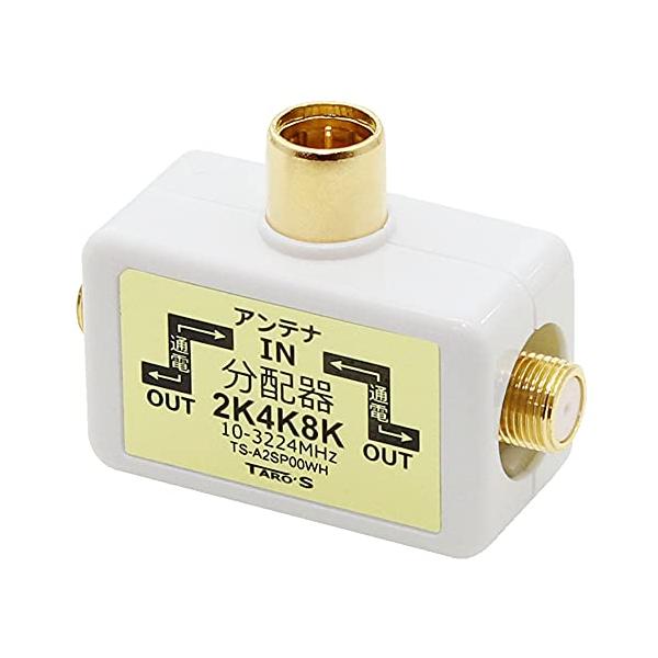 アンテナ分配器 4K8K・地デジ・BS・CS・CATV放送対応 2分配 テレビコンセント直付け 全端子電流通過型 日本仕様 ホワイト TS-A2