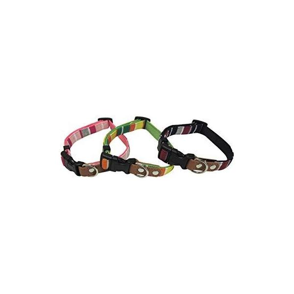 - 犬用首輪。パステルボーダー柄の犬具原材料:ナイロン。