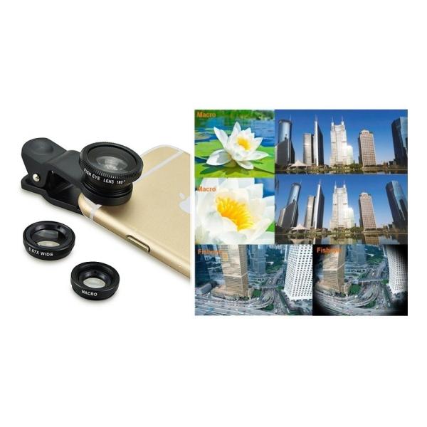 【並行輸入品】クリップ式でiPhoneや各種スマホに対応!魚眼・マクロ・広角 3in1 多機能レンズ サードアイ ブラック(定形外郵便、送料別商品)