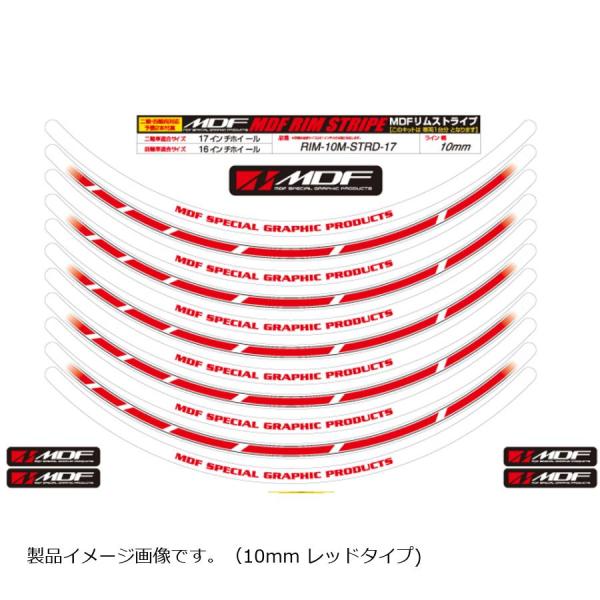 ステッカー デカール MDF ストロボ リムストライプ 10ミリ RD 二輪 17インチ/ 四輪 16インチ