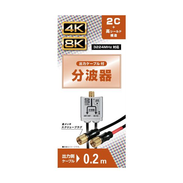 - Yselect YTVSEP0020N 4K8K放送対応 ケーブル分波器 発売日:2025年11月14日●混合器やブースターなどで混合したUHF(地上デジタル)アンテナとBS・CSアンテナの電波を、再び分けてテレビ・レコーダーなどに接続するときに使用します新4K8K衛星放送(3224MHz)の視聴に対応した分波器です●全てのテレビ放送に対応地上デジタル放送・BS/CS110°デジタル放送・CATVなど、全てのテレビ放送に対応しています●内部ケースにダイカストケース使用電波の漏洩・飛込みを防止する高シールド構造です●電通ランプ搭載テレビからBS・CSアンテナまで電流を送りたいときに、ランプの状態で送電ができているかどうか確認ができます 【仕様】出力ケーブル長さ:0.2m出力コネクタ形状:スクリュー型電通:CS・BS出力端子-入力端子間電通(最大DC15V・0.8A)