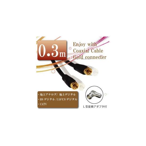 アンテナケーブル 0.3m ゴールド端子 同軸ケーブル F型 L型対応 相性保障