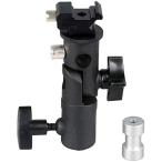 - パッケージ個数:1・商品内容: アルミ製 アンブレラホルダーx1PC (1/4と3/8一体型メスダボ付き・着脱可) / おまけ(レンズキャップホルダーx1PC)・アンブレラホルダーサイズ: 全長 10.5 直径 約2.5 傘芯穴径 約8mm シュ—部分 3.0x2.5 重量 約145g・アンブレラホルダー材質:アルミ合金(つまみと円盤部分はABS樹脂) 厚紙小箱での包装になります・レンズキャップホルダーサイズ: 輪ゴム部分を除いたヒモ長さ 約11 商品画像中のカメラは商品に含まれません。予めご了承くださいませ■クリップオンストロボ(スピードライト)用のアンブレラホルダーに、おまけでレンズキャップホルダーをお付けしています。 ■アンブレラホルダーはアルミ合金製ですので重すぎず(約145g)、とはいえ剛性、強度はプラスチック製には無いクオリティとなっています。 尚、可動部分はギアー付でしっかり固定可能です。 ■シュー部分は回転可能で、下に付いている円盤にて固定が可能です。また、下部には着脱可能な1/4と3/8一体型のメスダボが付いていますので、ライトスタンドだけではなく、三脚にも取り付けできます。 ■おまけのレンズカバーホルダーは、両面テープタイプのパッドがプラスチック部分にて貼りつけてあるタイプとなります。 《画像のような厚紙小箱での包装になりますが、輸入品のため小箱上に輸送中に生じてしまった軽微なへこみや変形が見られる場合がございます。予めご了承くださいませ。》