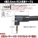 4極3.5mm→RCA変換 L/V/G/R仕様 4極3.5mm(オス)-RCA(メス)赤・白・黄 長さ:20cm パナソニックナビに多い・ドラレコ等 ZUUN 435AZCRF3