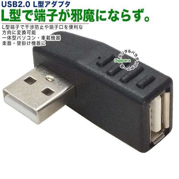 USB2.0(A)端子をL型に変換、パソコン周りのスペース拡張、車載機器の配線がきれいに仕上がる