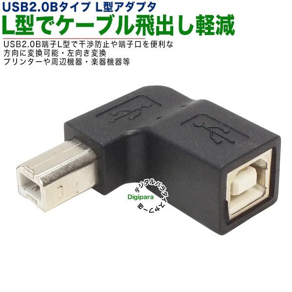 USB2.0Bタイプ左折れアダプタ スペース確保 ケーブル干渉防止 L型 壁掛け USB2.0Bタイプ(メス)⇔USB2.0Bタイプ(オス) 左向き直角 2BzcL
