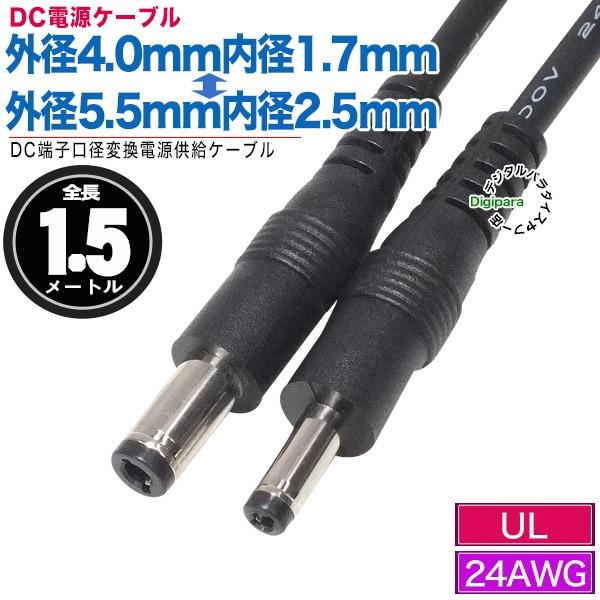 外径4.0mm内径1.7mm(オス)⇔外径5.5mm内径2.5mm(オス)DCケーブル1.5m 電源ケーブル ZUUN 40175525zc15