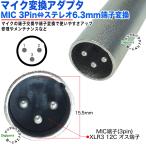 6.3mmステレオ→MIC端子変換アダプタ 6.3mmステレオ(メス)→MIC(3pin)(オス) XLR3 12C キャノン 楽器 マイク 音楽編集ケーブル延長、変換 63SzcMIC