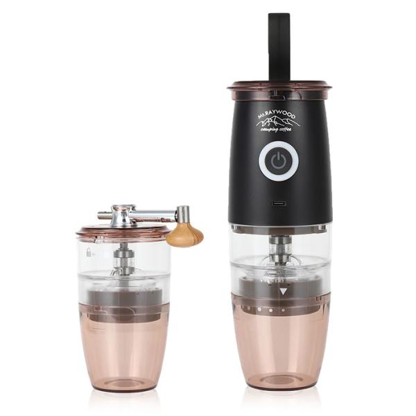 Mt.RAYWOOD コーヒーミル 電動 手動 2way ポータブル アウトドア キャンプ コンパクト 充電式 手挽き 水洗い可 臼式 セラミック フィルター付き