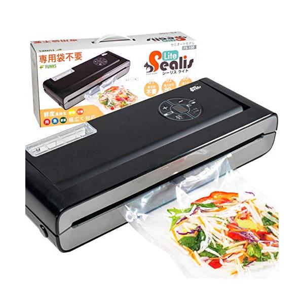 - メーカー希望小売価格はメーカーサイトに基づいて掲載しています■商品説明 真空パック器 Sealis Lite/シーリスライト FS-100 コストを抑え簡単に真空保存。 専用袋が不要のため 圧倒的なコストパフォーマンスを実現 割高な専用袋を使う必要がなく 市販のナイロンポリ袋で費用を気にすることなく 安価に真空パックを作ることが可能です。 最大脱気力-80kpaを採用強力吸引 従来の真空パック機は-50~60Kpaが主流ですが 本製品は-80Kpaの真空度を実現。 脱気力の差で保存後の鮮度が変わる 脱気力が強いほど真空度が高くなり 鮮度をより長く保つことができます。 簡単なパネル4タッチで 誰でも簡単操作 難しい操作が無く、簡単に真空状態にできます。 乾湿両用、汁物にも対応 幅広く対応しているため多種多彩な保存が可能です。 最大脱気力-80kpaを採用強力吸引 従来の真空パック機は-50~60Kpaが主流ですが 本製品は-80Kpaの真空度を実現。 シール機能搭載 シール機能で脱気せずに、封だけをすることが可能。 食べかけのお菓子の袋などをパックすることができ いつでも美味しさをキープ! コンパクト設計 コンパクトサイズなので収納スペースに困らない ※袋の厚さによっては袋内に空気が入ってしまう場合がございます。 真空状態を維持するためには厚み0.07mm以上のビニール袋をお使いください。 ※圧着用熱線部のテフロンテープは剥がさずにご使用ください。 ■商品の仕様 製品型番 FS-100 圧着面 3mm シール可能幅 260mm 吸引力 -80Kpa 製品サイズ 幅380mm×奥行145mm×高さ75mm 重量 1.7kg セット内容 本体、清掃用ピン、清掃用チューブ、日本語説明書 ■レビューについて 「みんなのレビュー」に投稿してみましょう♪ 宜しければお客様のご意見やご感想をお聞かせくださいませ ・商品が到着したらレビューを投稿してみましょう ・レビューは購入履歴の画面からご投稿頂けます 購入履歴画面 ・レビュー内に、注文番号をご記入ください ・レビューの内容は当店のサービス向上などのために役立たせていただきます