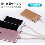 【並行輸入品】3in1 充電ケーブル 《シルバー》 Type-C MicroUSB 2.1A高速充電 ナイロン編み タイプC マイクロUSB(ゆうパケット、送料別商品)