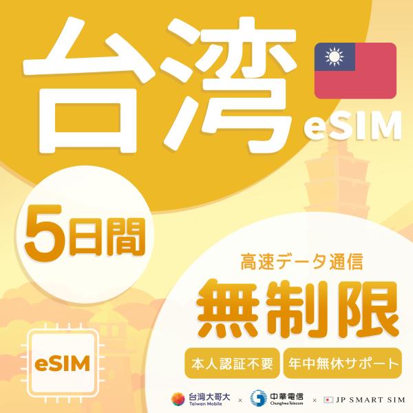 【台湾 eSIM 無制限】5日間 プリペイドeSIM 4G/5Gデータ通信専用 |日本語安心サポート|旅行・出張・カップル・友達同士に最適 |中華電信正規品【DXHUB】