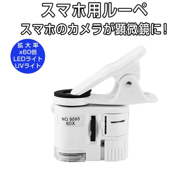 スマホ用ルーペ 拡大鏡 x60 60倍率 LED付き UVライト スマホ用マイクロスコープ スマホのカメラが顕微鏡に変わる ポータブルルーペ iPhone Android 1ヶ月保証
