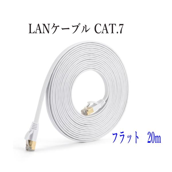 LANケーブル CAT7 20m フラット カラー 白 10ギガ対応 シールドケーブル 薄型 金メッキ コネクタ ツメ折れ防止