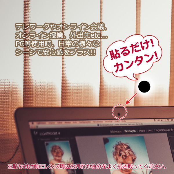 ノートパソコン・タブレット・スマートフォンなどの内蔵カメラ部分に貼ることで、