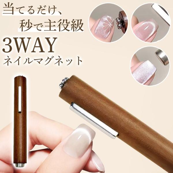 ネイル用マグネット 3way 磁石 キャッツアイネイル マグネットジェル セルフネイル ネイルアート ツール 強力 磁力 スティック ペン型 木目調 ブラウン