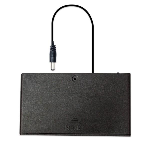 身近にある単3電池を使って、多くの電気製品に使われる12Vの電源を供給。スイッチのON、OFFもあるため電気の制御も出来ます。