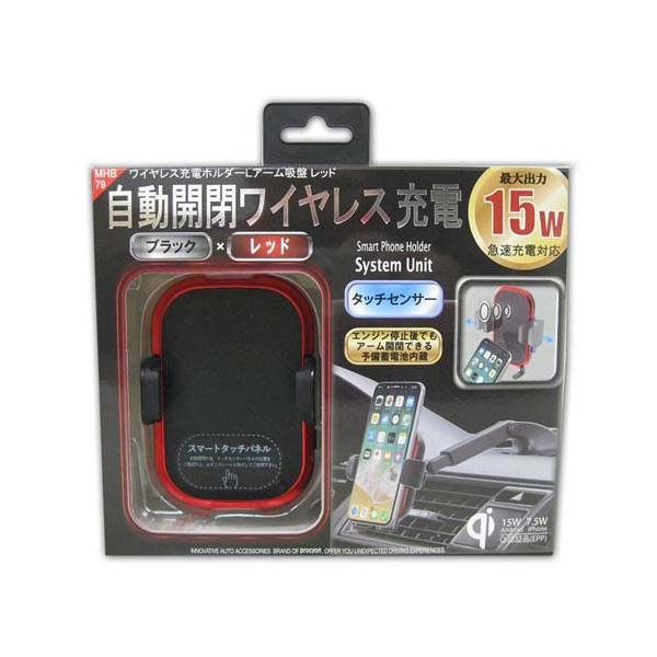 - 自動開閉ワイヤレス充電ホルダー吸盤式 レッド MHB-79/携帯電話・スマートフォン周辺機器/【発売元、製造元、輸入元又は販売元】プロキオン/【自動開閉ワイヤレス充電ホルダー吸盤式 レッド MHB-79の商品詳細】●自動開閉ワイヤレス充電。最大出力15W。急速充電対応。(Qi EPP認証品)●Qi規格の全てのスマホに対応。12V、24V車兼用。●タッチセンサーで開閉。指かスマホでタッチすると開き、無線充電開始と同時にアームが閉まる。●3段階に伸びる伸縮式フットスタンド。無線充電コイルの位置を調整し、発熱の少ない最速の充電効果を実現。●ぐらつきの少ない強力吸盤とスリムステー。最長230mmまで伸ばせるロングステー、アングル調整も自由自在。/cate80996