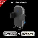 12V24V車用 自動開閉 Qi 2WAYワイヤレス充電ホルダー15W ガンメタ/BK エアコンタイプ/ロングアーム吸盤 MHB-80 プロキオン