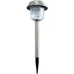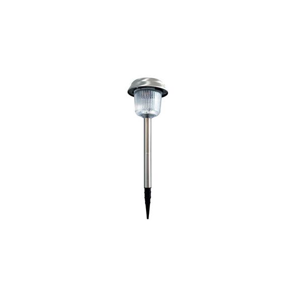 - ポールの連結で2段階の高さ調節が可能です。 設置場所を選ばない、コンパクトなガーデンライトです。 ステンレスで見た目もおしゃれに、耐久性もUPしました。 ON/OFFの切り替えスイッチ付きで、暗くなったら自動で点灯します。 ソーラー充電式で電源いらず、工事不要の差し込むだげの簡単設置。 注意事項:ライトの点灯時間はライトの設置場所・天候・季節等に大きく左右されます。 一日中曇りや雨の日は、夜間ライト点灯させるのに十分な電気量を蓄えることができません。 雨や曇りで一日中太陽の光りが当たらなかった日は点灯しません。 晴れた日に十分に充電させてからライトを点灯させてください。 【品番】10387 【サイズ】 約直径117×290〜390mm 【材質】ステンレススチール、ポリプロピレン樹脂、ABS樹脂等 【満充電時間】約8時間 【連続点灯】 晴れ時約6〜7時間、曇り時約4〜5時間、降雨時約3時間 【原産国】中国 【カラー】シルバー 【JAN】4582425820747 【保証期間】 購入日より6ヶ月 【設置場所】 ●朝から夕方にかけて太陽光があたる場所(南向きが最適です)に設置してください。 ●雨などによる浸水や積雪のない場所、湿気の少ない場所、落下などの危険がない場所を選んでください。 ●水没する可能性のある場所では使用しないでください。 ●夜間、周囲が明るくなる場所には設置しないでください。 ●ソーラーパネルに光が当たると点灯しない場合があります。 【取り扱い上のご注意】 ●本品は完全防水ではありません。 ●付属されている充電池は工場出荷時における点灯確認用のものです。十分な充電をしたあとでも、ライトが暗い場合やすぐに消えてしまう場合は、充電池の交換時期です。 ●乾電池は使用しないでください。 ●本品の特性上、光の色や明るさにバラツキが出ることがありますのでご了承ください。