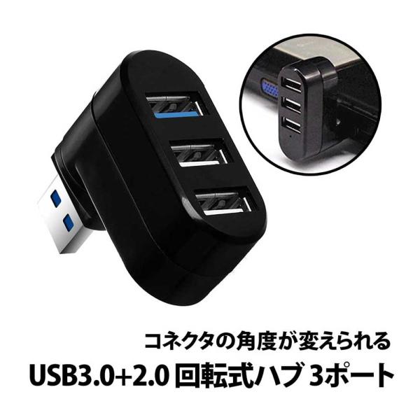 50%offクーポン有 回転式 USBハブ 3ポートハブ USB3.0 USB2.0 180度回転 マウス ワイヤレス スマホ ノートパソコン 3口 コンパクト PC