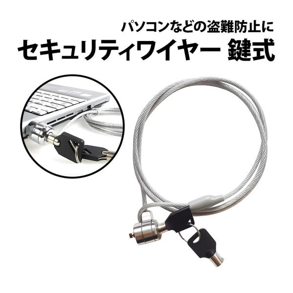 50%offクーポン有 セキュリティワイヤー カギ式 約 1.8m 約1.2m シリンダー錠 セキュリティ ロック 盗難防止 キーロック カギ型 セキュリティー ノートパソコン