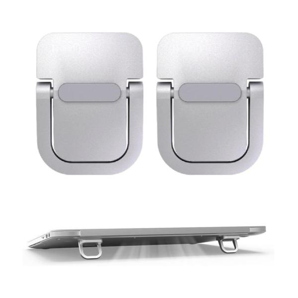 【並行輸入品】ミニ ノートパソコンスタンド 貼り付け型 2個セット シルバー ノートPC用 亜鉛合金 折り畳み 姿勢 視線 角度 放熱(ゆうパケット、送料別商品)