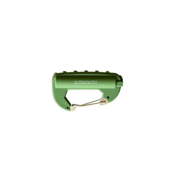 ◇リュックや金具等に引っ掛けられるカラビナ型のバッテリー。