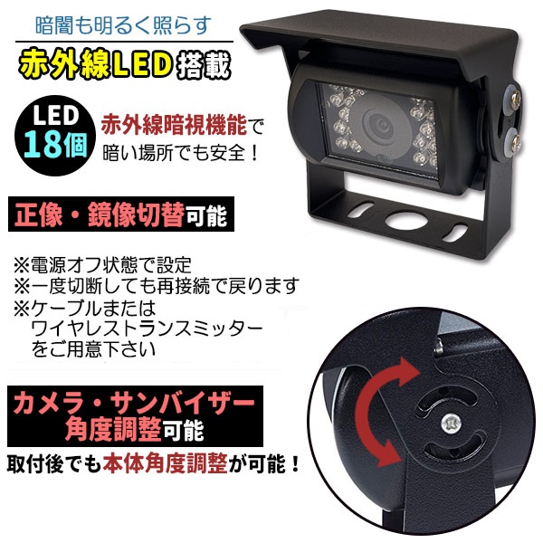 車載 バックカメラ 12V−24Vトラック用も赤外線暗視170度バックカメラ/カメラ角度調整+AV延長線20Mトラック用 車用 車載 カメラ