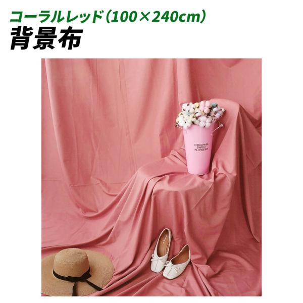 背景布 100cm*240cm 無地 生地 物撮り 撮影用 内装 写真 多用途 シワが付きにくい バック スクリーン スタジオ 布 クロス (コーラルレッド)