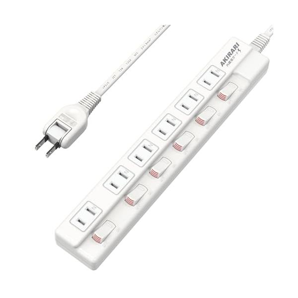 【防塵防雷 個別スイッチ】 電源タップ 6口 AKIRARI コンセントタップ ホワイト 雷ガード スイッチ電源タップ テーブルタップ 延長ケー