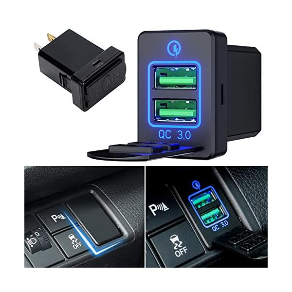 トヨタ USB電源 USBポート 2ポート搭載 スイッチホール パネル カバー キャップ付 スマホ タブレット 充電 TOYOTA 汎用 (ブルー)