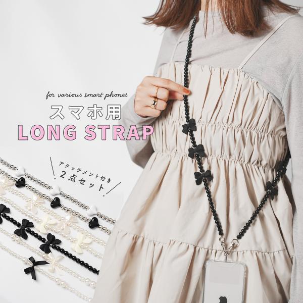 スマホ ストラップ ショルダー 斜めがけ 肩掛け スマホショルダー 落下防止 パール リボン ハート ビーズ おしゃれ かわいい 大人可愛い 挟む 簡単 レディース