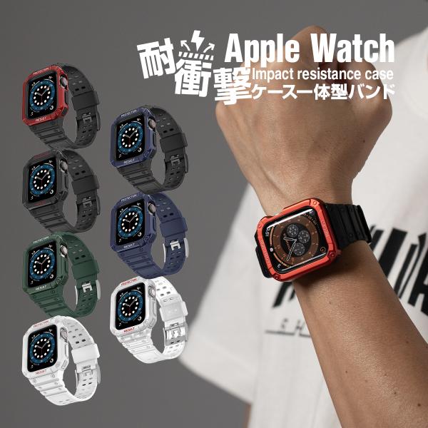 アップルウォッチ バンド メンズ 一体型 ベルト Apple Watch バンド クリア Apple Watch ケース アップルウォッチ カバー ケース一体型 かっこいい おしゃれ