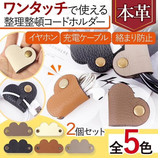 牛皮 本革 ハート コードホルダー 2個セット ケーブルホルダー レザー iphone 充電器 イヤホンアクセサリー コードリール メンズ レディース ポイント利用